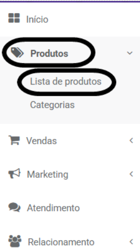 Passo 2 - No menu lateral clique em produtos ➡️ lista de produtos
