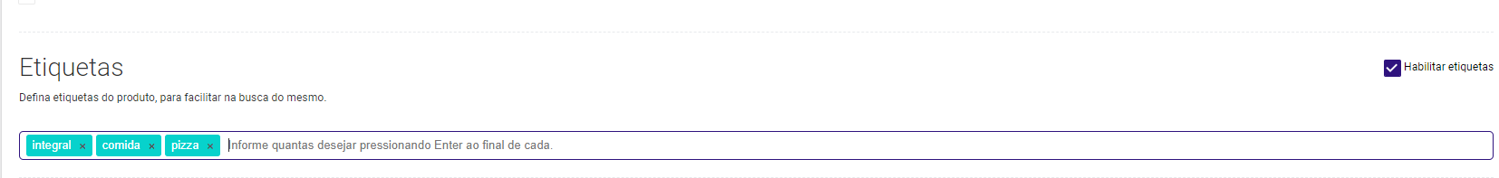Passo 4 - Descendo a mesma tela onde edita as informações dos produtos, será disponibilizado o campo “Etiquetas”