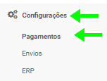 Passo 2 - Em seguida clique no menu lateral esquerdo Configurações ➡️ Pagamentos
