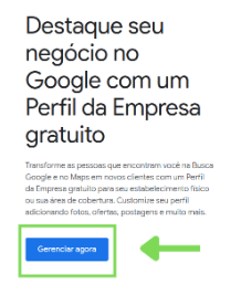 Passo 1 - Acesse o site https://www.google.com/intl/pt-BR_br/business/ e clique no botão “GERENCIAR AGORA”;