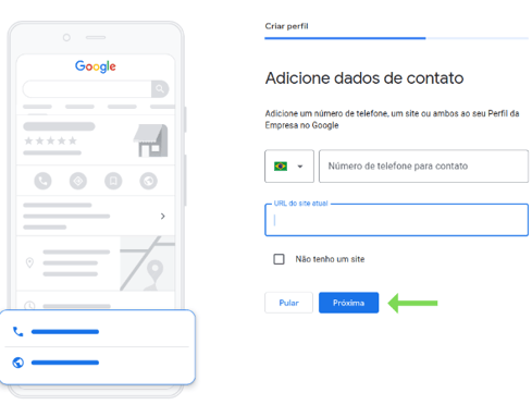 Passo 8 - Adicione as informações de contato e seu site e clique em “PRÓXIMA”