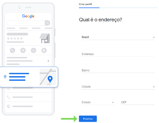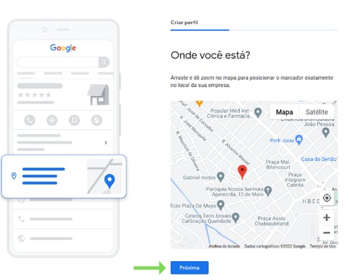 Passo 6 - Defina no mapa onde se encontra sua loja e clique em “PRÓXIMA”