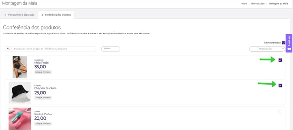 Passo 3 - Selecione os produtos que deseja na sua mala