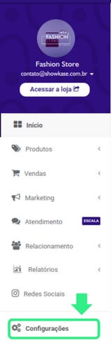 Passo 1 - No menu principal esquerdo clique em "Configurações"