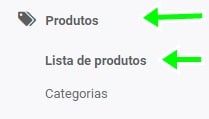 Passo 1 - Acesse a plataforma da sua loja virtual, no menu lateral do lado esquerdo vá em Produtos ➡️ Lista de produtos.