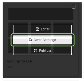 Passo 2 - Busque a Vitrine que deseja editar e passe o mouse por cima da vitrine para visualizar os botões de ação: Editar, Gerar catálogo e ir para vitrine.