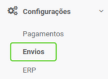PASSO 1 - No seu painel de admin no menu lateral esquerdo busque por Configurações e clique em “ENVIOS”