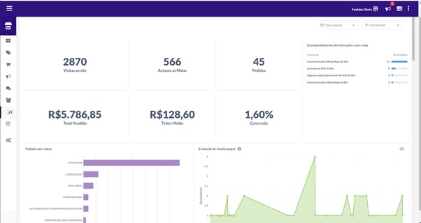 Passo 2 - E prontinho! A área da performance da loja você encontra todas as informações relevantes sobre sua loja virtual!