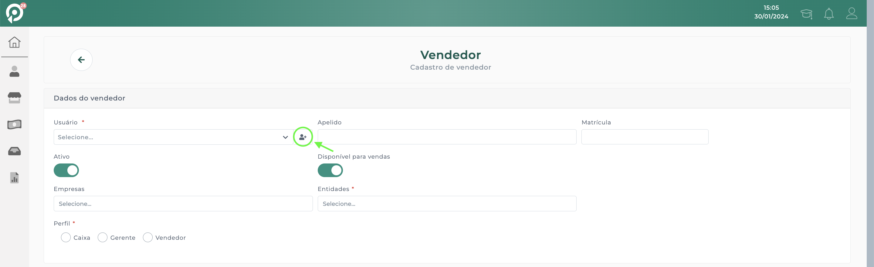 Perfil: "Vendedor".