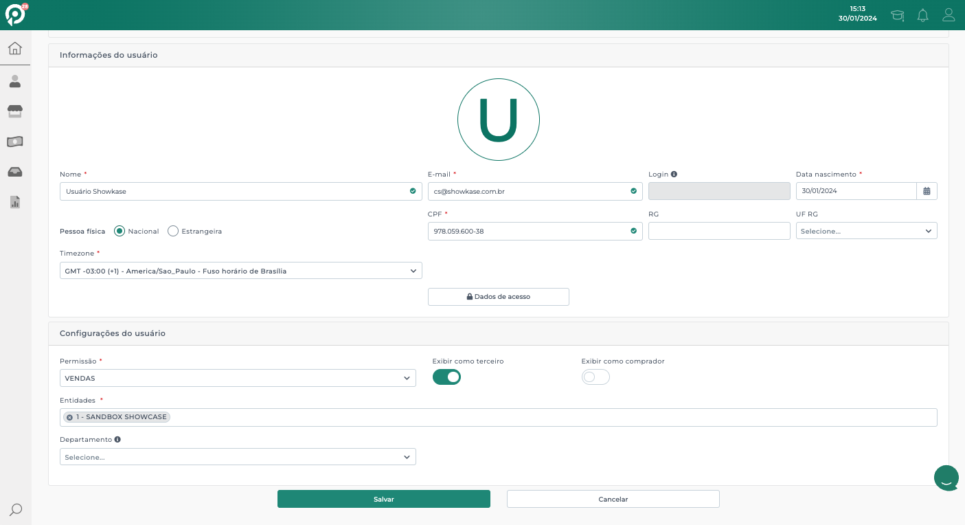 Nome: "USUÁRIO SHOWKASE".